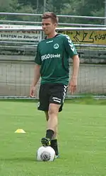 He made his 2. Bundesliga début on 30 January 2009, as a 64th-minute substitute for Frank Wiblishauser in a 0–0 draw with Rot-Weiß Oberhausen.[14] His first start came on 6 February 2009, against FSV Frankfurt.[15] A week later, he scored his first 2. Bundesliga goal and recorded his first assist in a match against SV Wehen Wiesbaden.[16] Stieber later scored four more goals in seventeen appearances against Greuther Fürth,[17] Osnabrück,[18] Duisburg[19] and Freiburg.[20]