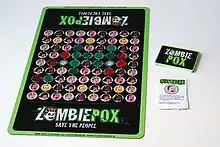 Zombiepox (also ZOMBIEPOX) is a cooperative board game in which players fight the spread of zombies that threaten to take over the town. It was developed by Tiltfactor Laboratory, a game research center located at Dartmouth College, New Hampshire, focusing on games and play that investigate and explain ideas.