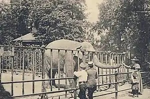 ![]() A postcard from 1900 featuring an elephant at the Zoological Garden of Hamburg | |