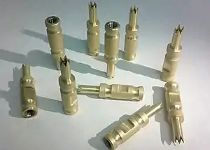 Zirconium nitride is a hard ceramic material similar to titanium nitride and is a cement-like refractory material. Thus it is used in refractories, cermets and laboratory crucibles. When applied using the physical vapor deposition coating process it is commonly used for coating medical devices,[5] industrial parts (notably drill bits), automotive and aerospace components and other parts subject to high wear and corrosive environments.