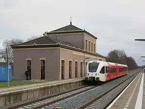 In 2002–2012, the station building was restored to its original state.[3] On 1 May 2011, the Stadskanaal–Zuidbroek railway was reopened between Veendam and Zuidbroek.[5] Train services are provided by Arriva. Since 2014, the Noord-Nederlands Trein & Tram Museum has been housed in the station building.[7]