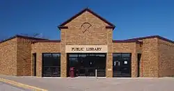 In the early years, the library moved around as it struggled to find a permanent home. It was once located above a general store, in a millinery establishment, and in a bank. The library was able to secure a grant of 6,500 dollars from Andrew Carnegie and in May 1908 the library finally had a place of its own. The Carnegie Library, the smallest one in the state, at the corner of East Avenue and 3rd St. was home to the library for 87 years.[4] The building suffered some minor damage in 1924 when the adjoining village hall was destroyed in a fire.[6] In 1995, the library moved to a new 10,400 sq. ft. building on 100 West Avenue.[7]