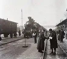 The replica armored train Hurban is displayed close to the station which was an armored train used during World War II, during the Slovak National uprising.