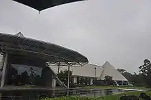 ʻImiloa opened to the public in February, 2006. It is part of the University of Hawaii at Hilo, and is located near the base facilities for several of the Maunakea observatories in University Park for Science and Technology on the UH-H campus, overlooking Hilo Bay. Its unique architectural design includes three large titanium-clad cones, representing the volcanoes Mauna Kea, Mauna Loa and Hualālai. The extensive gardens feature native, endemic and "canoe plants" brought by the Polynesians. Exhibit halls, planetarium, gift shop, and Sky Garden café are open to the public Tuesday through Sunday. An evening "Maunakea Skies" star talk is held in the planetarium on the last Saturday of each month.