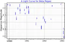 A light curve for Beta Pegasi, plotted from Hipparcos data[18]