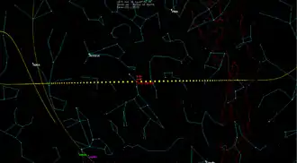 The asteroid has an Earth minimum orbit intersection distance of 0.0020 AU (300,000 km), which corresponds to 0.8 lunar distances (LD). On 19 July 2015, it passed about 2.5 million kilometers from Earth (6.5 LD),[1] attracting the interest of astronomers.[1] The asteroid was listed as level 1 in the Torino Scale on 4 November 2011, 9 days after its discovery, but was removed two weeks later.[9][10]