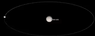 (55637) 2002 UX25 is a trans-Neptunian object that orbits the Sun in the Kuiper belt beyond Neptune. This TNO briefly garnered scientific attention when it was found to have an unexpectedly low density of about 0.82 g/cm3.[12]