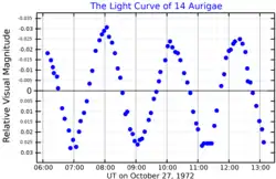 - Fitch, W. S.; Wisniewski, W. Z. (August 1979). "Tidal effects in pulsating stars. III. l = 1 p5-modes in the ellipsoidal variable 14 Aurigae A". The Astrophysical Journal. 231: 808–825. Bibcode:1979ApJ...231..808F. doi:10.1086/157246. Retrieved 29 October 2021.