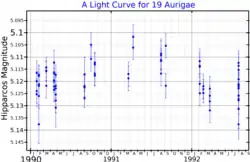 - Chistyakov, Yu. N.; Sokolov, N. A. (November 1999), "On the Variability of 19 Aurigae as Observed by the Hipparcos Satellite", Information Bulletin on Variable Stars, 4808: 1, Bibcode:1999IBVS.4808....1C.