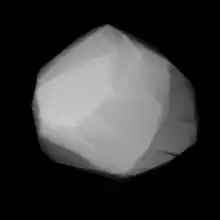 Measurements made with the IRAS observatory give a diameter of 101.72 ± 5.18 km and a geometric albedo of 0.06 ± 0.01. By comparison, the MIPS photometer on the Spitzer Space Telescope gives a diameter of 97.99 ± 7.40 km and a geometric albedo of 0.06 ± 0.02.[3]