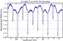 - "54 Aur". SIMBAD. Centre de données astronomiques de Strasbourg. Retrieved 2019-05-24.