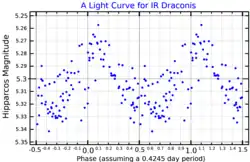 8 Draconis is the star's Flamsteed designation. It also received the variable star designation IR Draconis in 2000, after its variability had been discovered using Hipparcos photometry.[6]