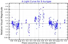 - Krisciunas, K.; Griffin, R. F.; Guinan, E. F.; Luedeke, K. D.; McCook, G. P. (1995). "9 Aurigae: Strong evidence for non-radial pulsations". Monthly Notices of the Royal Astronomical Society. 273 (3): 662. arXiv:astro-ph/9407094. Bibcode:1995MNRAS.273..662K. doi:10.1093/mnras/273.3.662. S2CID 117588180.
