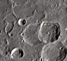 Abenezra is a lunar impact crater located in the rugged highlands in the south-central section of the Moon. Abenezra is named after the Sephardic Jewish sage, poet, biblical commentator, and astrologer Abraham ibn Ezra.[1] It is attached along the southeast rim to the crater Azophi. To the northeast lies the crater Geber, and further to the southeast is the larger Sacrobosco.