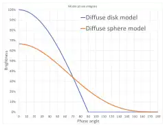 Planetary bodies can be approximated reasonably well as ideal diffuse reflecting spheres. Let be the phase angle in degrees, then[14]