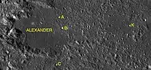 By convention these features are identified on lunar maps by placing the letter on the side of the crater midpoint that is closest to Alexander.
