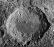 Aliacensis is a lunar impact crater that is located in the rugged southern highlands of the Moon. The crater Werner is located just to its north-northwest, and a narrow, rugged valley lies between the two comparably sized formations. To the southwest is Walther, and Apianus is to the northeast. Aliacensis is named after the 14th century French geographer and theologian Pierre d'Ailly in 1935.[1][2] It is from the Nectarian period, which lasted from 3.92 to 3.85 billion years ago.[3]