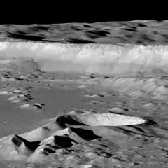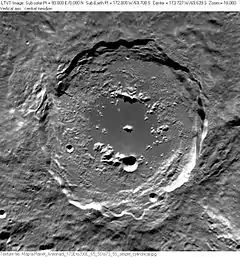 The bottom of a small unnamed crater within Antoniadi crater was measured by the laser altimeter (LALT) instrument on board the Japanese Selenological and Engineering Explorer (SELENE) satellite to be the lowest point on the moon,[1] at Lunar latitude 70.43° S, longitude 187.42° E.[3] The point is 9.178 km below the average lunar geoid. The measurement was confirmed by laser altimetry data from the Chang'e 1 orbiter,[4] which further refined the location to latitude 70.368° S, longitude 172.413° W.