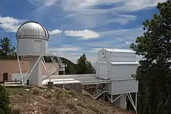 The NMSU 1.0 m (39 in) telescope is a Ritchey-Chretien reflector set on an alt-azimuth mount, and was completed in 1994.[15][16] A 2048 × 2048 CCD mounted at the Nasmyth focus provides at 15.7 arcminute view of the sky.[17]