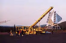 ![]() BLAST hanging from the launch vehicle in Esrange near Kiruna, Sweden before launch in June 2005 | |