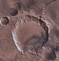 Beer is a crater lying situated within the Margaritifer Sinus quadrangle (MC-19) region of the planet Mars, named in honor of the German astronomer, Wilhelm Beer.[1] It is located at 14.4°S 351.8°E .