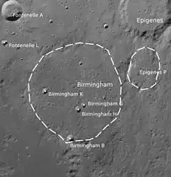 ![]() Location of the lunar crater Birmingham. | |