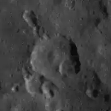 Borda is a lunar impact crater that lies between Santbech to the north-northwest and Reichenbach slightly further away to the south-southeast. It was named after French astronomer Jean-Charles de Borda.[1] It has a low rim that is broken along the southeast by a smaller crater. The rim is intruded into by another small crater along the southwest side, and there is an irregular cleft along the northwest face. There is a central peak at the midpoint of the floor.