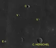 By convention these features are identified on lunar maps by placing the letter on the side of the crater midpoint that is closest to C. Herschel.