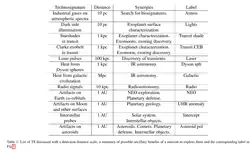 In June 2020, NASA was awarded their first SETI-specific grant in three decades. The grant funds the first NASA-funded search for technosignatures from advanced extraterrestrial civilizations other than radio waves, including the creation and population of an online technosignature library.[78][79][80] A 2021 scientific review produced by the i.a. NASA-sponsored online workshop TechnoClimes 2020 classified possible optimal mission concepts for the search of technosignatures. It evaluates signatures based on a metric about the distance of humanity to the capacity of developing the signature's required technology – a comparison to contemporary human technology footprints, associated methods of detection and ancillary benefits of their search for other astronomy. The study's conclusions include a robust rationale for organizing missions for searching artifacts – including probes – within the Solar system.[81][56]