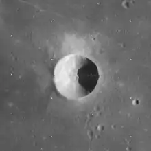 Cauchy is a small lunar impact crater on the eastern Mare Tranquillitatis. It was named after French mathematician Augustin-Louis Cauchy.[1] It is circular and symmetric, with a small interior floor at the midpoint of the sloping inner walls. Due to the high albedo of this bowl-shaped formation, it is particularly prominent at full Moon.