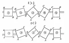 Huygens first re-derives Archimedes's solutions for the stability of the sphere and the paraboloid by a clever application of Torricelli's principle (i.e., that bodies in a system move only if their centre of gravity descends).[86] He then proves the general theorem that, for a floating body in equilibrium, the distance between its centre of gravity and its submerged portion its at a minimum.[10] Huygens uses this theorem to arrive at original solutions for the stability of floating cones, parallelepipeds, and cylinders, in some cases through a full cycle of rotation.[87] His approach was thus equivalent to the principle of virtual work. Huygens was also the first to recognize that, for these homogeneous solids, their specific weight and their aspect ratio are the essentials parameters of hydrostatic stability.[88][89]