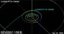 - Horizons output. "Barycentric Osculating Orbital Elements for Comet C/2009 F6 (Yi-SWAN)". Retrieved 2011-02-03. (Solution using the Solar System Barycenter and barycentric coordinates. Select Ephemeris Type:Elements and Center:@0)