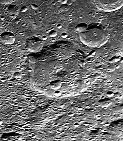 Crommelin is an ancient lunar impact crater that is located in the vicinity of the south pole of the Moon, on the far side. It lies to the north of the large crater Zeeman, and to the east-northeast of Numerov.