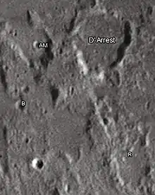 By convention these features are identified on lunar maps by placing the letter on the side of the crater midpoint that is closest to D'Arrest.