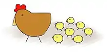 Next morning, the old man came to the stable and caught the hen while the old women prepared to cook it. When she made the fire ready, the old man put the hen in the hot pot. The hen screamed loudly because of the pain she got before she died. The seven chicks heard their mother's voice then they came to see her immediately. When they saw their mother's body, their hearts were broken, then looked at each other and threw themselves in the fire to join their mother.[2]