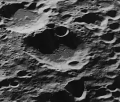 De Moraes is a lunar impact crater that is located in the northern part of the Moon's far side. It lies to the northeast of the larger crater Bridgman, and southwest of van Rhijn.