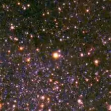 Delta Cephei (δ Cep, δ Cephei) is the Bayer designation for a quadruple star system[4] located approximately 887 light-years away in the northern constellation of Cepheus, the King. At this distance, the visual magnitude of the star is diminished by 0.23 as a result of extinction caused by gas and dust along the line of sight.[5] It is the prototype of the Cepheid variable stars that undergo periodic changes in luminosity.