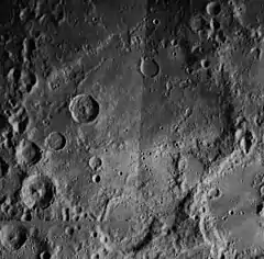 This feature is so heavily eroded and degraded by overlapping impacts that it was not actually recognized as a crater formation until the 20th century. The name for this formation was suggested by Eugène M. Antoniadi in 1942, and was passed during the general assembly of the IAU in 1948.[1]
