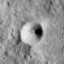 Dollond is a small lunar impact crater that is located in the central region of the Moon, to the north of the crater Abulfeda. It was named after British optician John Dollond.[1] Due west of Dollond is Anděl. Dollond is circular and cone shaped, with a tiny floor at the midpoint of the sloping interior walls.
