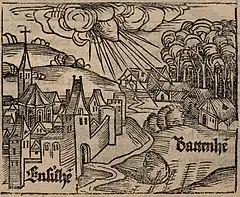 Brandt, a satirist and author of Das Narrenschiff, also described the meteorite and its fall in the poem "Loose Leaves Concerning the Fall of the Meteorite".[3] The fall is also described in Folio 257 of the Nuremberg Chronicle.[7]
