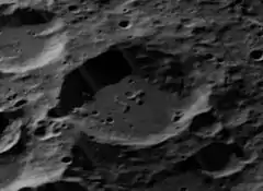 Esnault-Pelterie is a lunar impact crater on the far side of the Moon, named after French rocketry and astronautics pioneer Robert Esnault-Pelterie. It is located in the northern hemisphere, to the south of the crater Carnot. Esnault-Pelterie overlies the western side of the crater Schlesinger. To the south is the crater Von Zeipel and to the southwest is Fowler.