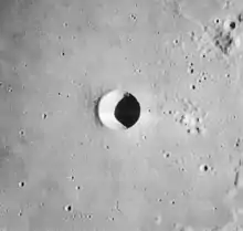 Euclides is a small lunar impact crater located near the eastern edge of Oceanus Procellarum, about 30 kilometers to the west of the Montes Riphaeus mountains. The mare in the vicinity is devoid of significant craters, but to the west is an area of low rises. The crater is named after the Greek mathematician Euclid.[1]