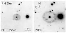 FH Serpentis (Nova Serpentis 1970) was a nova, which appeared in the constellation Serpens in 1970. It reached magnitude 4.4.[5] It was discovered on February 13, 1970 by Minoru Honda located at Kurashiki, Japan.[6][7] Other astronomers later studied this nova, and calculated its distances based on the decay time of its light curves.[7]