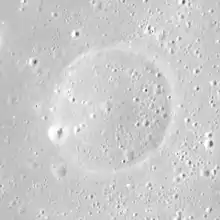 Finsch is a relatively small lunar impact crater in the mid-part of Mare Serenitatis that has been almost completely (other than the crest of the rim) covered by the mare, forming a ghost crater in the lava plain. It was named after German zoologist Otto Finsch.[1] It is located to the south-southeast of the crater Sarabhai and northeast of Bessel.