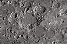 Gemma Frisius is a lunar impact crater that is located in the rugged southern highlands of the Moon. It was named after Dutch physician Gemma Frisius.[1] It lies to the north of the walled plain Maurolycus, and southeast of the smaller crater Poisson. The crater Goodacre is attached to the northeast rim.