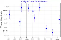 Gliese 402 is a BY Draconis variable, with its apparent magnitude varying between 11.64 and 11.70. The brightness changes are due to starspots and chromospheric activity combined with the rotation of the star. It has been given the variable star designation EE Leonis.[3]