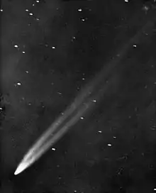 In the pre-dawn of 12 April 1901 there was a naked-eye discovery of the comet by Viscara, the manager of an estancia in the Departamento de Paysandú, Uruguay.[3] In the pre-dawn of April 23 the comet was observed in Queenstown, South Africa and on April 24 by David Gill and Robert Innes at the Royal Observatory, Cape of Good Hope; the tail was then about 10° long.[4] On April 24 the comet was also observed at Cape Leeuwin in Western Australia. At the Sydney Observatory on April 25, H. C. Russell found the tail to be about 2° long.[5]