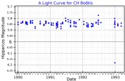 HD 128333 or CH Boötis is an irregular variable star in the northern constellation of Boötes. It is currently on the asymptotic giant branch of the HR diagram.[4]
