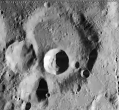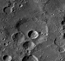Heinsius is an eroded lunar impact crater that lies in the southwestern part of the Moon. It is named after German astronomer Gottfried Heinsius.[1] It is located to the northwest of the prominent crater Tycho, and rays from that formation pass to the north and south of Heinsius as well as marking the rim and interior with material. To the south-southwest of Heinsius is the larger walled plain Wilhelm.