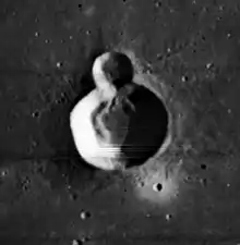 Heis is a small lunar impact crater that is located in the western part of the Mare Imbrium. It was named after German astronomer Eduard Heis.[1] It is located to the northeast of the crater Delisle, and south of C. Herschel. Due east is the wrinkle ridge Dorsum Heim. Heis is a circular, symmetrical formation with an interior floor that is about half the diameter of the outer rim. The tiny satellite crater Heis A intrudes slightly into the northern rim.